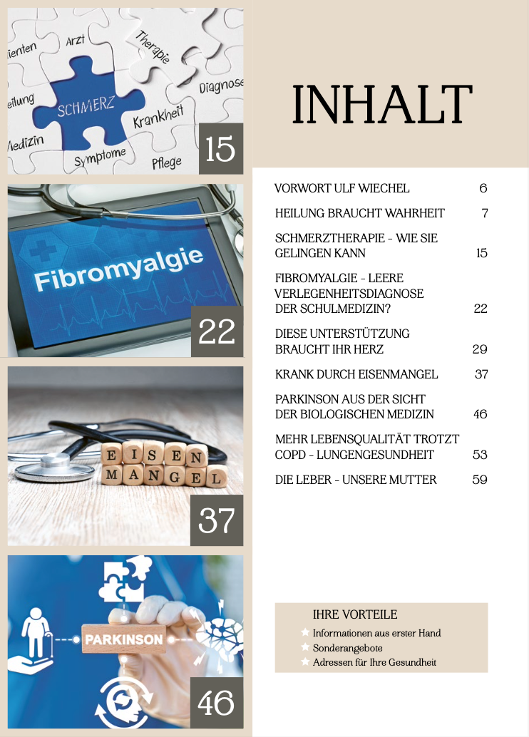 In dieser Sonderausgabe finden Sie alle bisher veröffentlichten Texte von Dr. Wiechel – verständlich, praxisnah und ganzheitlich. Die Beiträge zeigen, wie moderne medizinische Ansätze im Einklang mit natürlichen Heilkräften stehen können und welche Rolle Haltung, Wahrheit und Verantwortung in der Medizin spielen.