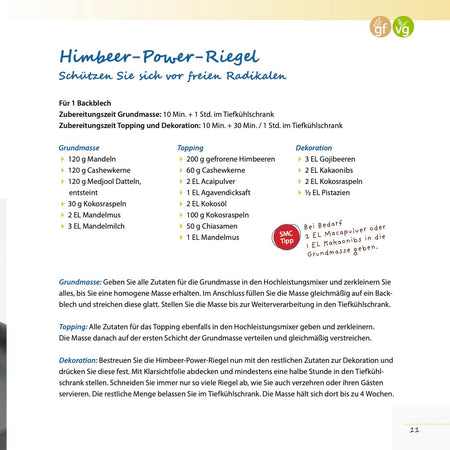 In der Bildergalerie finden Sie daher ein Beispiel-Rezept für Himbeer-Power Riegel. Ausserdem haben wir die Seite www.doctorskitchentalk.com entwickelt, wo Sie auf Ihrem Handy die Kochsendung zu (fast) jedem Rezept anschauen können.